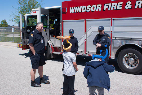Windsor Fire and Rescue came with a big red fire truck, and they welcomed kids to climb aboard and explore. A local detachment of the Ontario Provincial Police also sent a representative in full uniform in one of the police cruisers. It was a big hit.